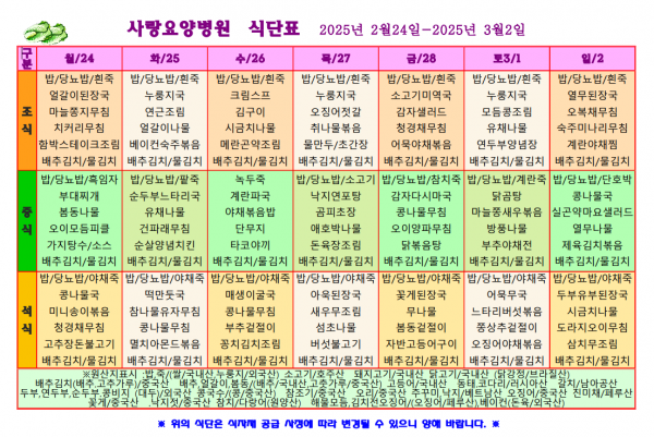 사랑요양병원 2월 넷째주 식단표
