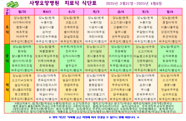 사랑요양병원 4월 첫째주 식단표